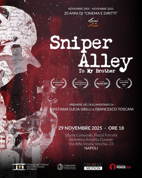 “Per la forza con cui intreccia memoria personale e storia collettiva, restituendo allo spettatore uno sguardo vivo e necessario su ciò che la guerra lascia e ciò che la memoria può ancora salvare. Attraverso la ricerca di un fratello perduto, il film costruisce un linguaggio universale che parla di lutto, umanità e rinascita”. Con questa motivazione il docufilm ‘Sniper Alley – To My Brother’ si è aggiudicato il premio principale come miglior documentario al Glocal DOC 2025 di Varese. Un riconoscimento prestigioso per il lavoro incentrato sulla storia di Džemil Hodžic e sul suo progetto “Sniper Alley Photo” (che ha l’obiettivo di ricostruire la memoria dell’assedio di Sarajevo attraverso le immagini dei più grandi fotoreporter di guerra) nato dopo la tragica perdita del fratello Amel, ucciso da un cecchino a soli 16 anni. Il docufilm - realizzato dallo studio di produzione con sede a Pescara Creative Motion che da anni porta avanti progetti di impegno civile e culturale a livello internazionale – continua a essere proiettato in contesti autorevoli. Dopo la presentazione nell’aula magna dell’Università di Anversa seguirà la Prima Nazionale italiana, con la proiezione in occasione del XVII Festival del Cinema dei Diritti Umani di Napoli alla presenza di numerosi ospiti. Alla presentazione nella città partenopea, prevista per il 29 novembre (a partire dalle ore 18 nello “Spazio Comunale Piazza Forcella” di via Vicaria Vecchia, 23 a Napoli) interverranno i registi dell’opera Cristiana Lucia Grilli e Francesco Toscani. Saranno introdotti da Maurizio Del Bufalo, coordinatore del Festival. Prima della proiezione è prevista una breve performance musicale dal vivo sulla colonna sonora del documentario, con Max Fuschetto (oboista e compositore) e Pasquale Capobianco (chitarrista, membro degli Osanna). Al termine della proiezione ci sarà un dibattito con gli interventi, tra gli altri, dei registi, di Džemil Hodžic (protagonista, sopravvissuto alla guerra di Sarajevo) con la traduzione curata da Fiorenza Grilli (mediatrice linguistica); Mario Boccia (fotoreporter, autore delle immagini originali) e Nicole Corritore (giornalista di Osservatorio Balcani Caucaso Transeuropa). L’evento straordinario, fortemente voluto dal Festival del Cinema dei Diritti Umani di Napoli, arricchisce il palinsesto della manifestazione che quest’anno è stata dedicata ai popoli curdo, sahrawi e palestinese. Ricorre inoltre in occasione del XX anniversario dalla fondazione dell’associazione Cinema e Diritti, che da diciassette edizioni organizza il Festival. Il tema trattato dal docufilm è più che mai attuale dopo le recenti notizie che avrebbero per protagonisti anche alcuni italiani. La Procura di Milano sta infatti indagando per omicidio volontario plurimo aggravato da motivi abietti e crudeltà sui “cecchini del weekend”. Si tratta di persone che negli anni Novanta avrebbero pagato per andare a uccidere uomini, donne e bambini a Sarajevo, partecipando all'assedio da parte dei serbo-bosniaci. Durante l'assedio di Sarajevo tra il 1992 e il 1996 ci sono state oltre 11mila vittime. Il docufilm attraverso tante autorevoli voci, tra cui quella del giornalista italiano Toni Capuozzo, e preziose immagini di repertorio racconta la vicenda di Džemil e di suo fratello Amel. Il 3 maggio 1995, giorno in cui era stata annunciata una tregua dall’esercito serbo che assediava Sarajevo, i due fratelli stavano giocando in strada quando un cecchino aprì il fuoco: Amel morì a soli 16 anni tra le braccia della madre. Il titolo è innanzitutto la dedica ad Amel Hodžic, ma diventa anche un richiamo universale che ognuno di noi rivolge al proprio “fratello” in ogni parte del mondo, a chi lotta per dignità, libertà e giustizia. Il documentario si fa così inno alla pace e alla responsabilità collettiva: stimolare il dialogo, favorire la condivisione, educare i popoli alla bellezza della diversità. "Il richiamo esercitato dal massacro dei bambini di Gaza non può non richiamare alla mente la crudeltà di Sebrenica o il disumano impegno dei cecchini di Serajevo a cui, oggi lo sappiamo con certezza, si accompagnò la caccia all'uomo alimentata anche da gruppi di assassini italiani. Sono storie di crimini che dimostrano quanto i genocidi siano la strategia preferita di tutte le guerre moderne e che nasconderne l'esistenza o rifiutarne le definizioni serve solo ad alimentare orribili complicità", commenta il coordinatore del Festival Maurizio Del Bufalo.
