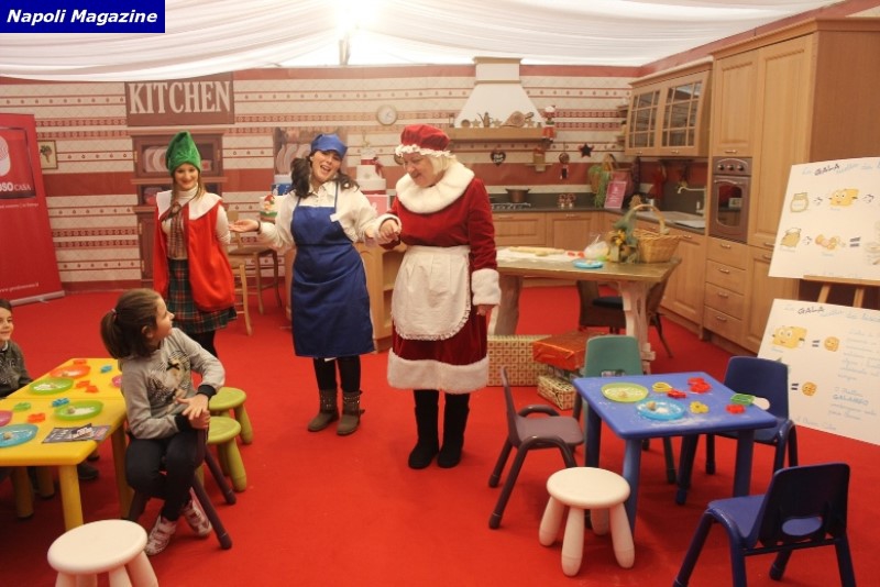 Cucina di Mrs Claus : un vero e proprio laboratorio per piccoli pasticcioni in un’atmosfera gioiosa, dove degustare biscottini e dolcetti appena sfornati.