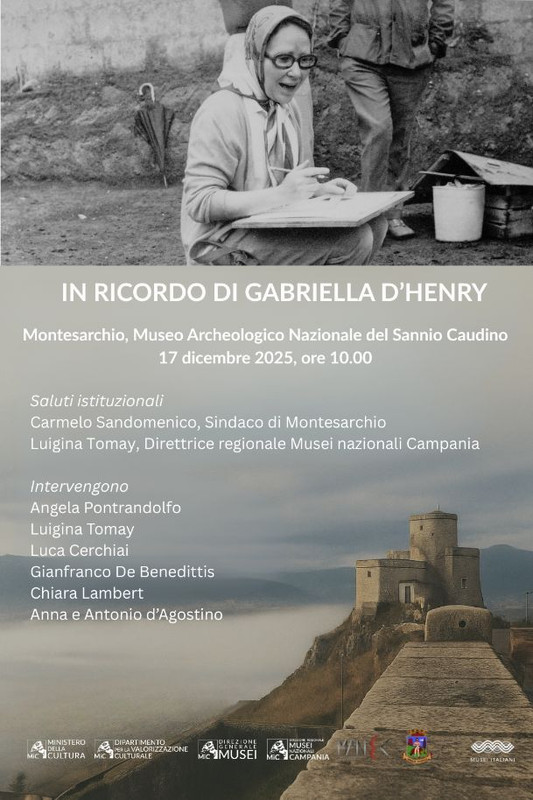 Mercoledì 17 dicembre 2025 la Direzione regionale Musei nazionali Campania organizza al Museo Archeologico Nazionale del Sannio Caudino una giornata dedicata al ricordo di Gabriella d’Henry, figura di grande rilievo per gli studi sul Sannio e per la tutela e la valorizzazione del patrimonio archeologico caudino, a dieci anni dalla sua scomparsa.