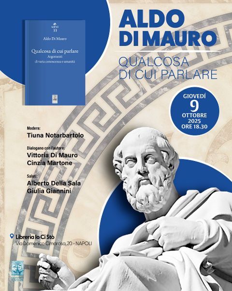 Ritorna in libreria lo scrittore Aldo Di Mauro con il libro “Qualcosa di cui parlare”, pubblicato dalla Giannini Editore nella nota collana Sorsi. La prima presentazione si terrà giovedì 9 ottobre presso la libreria “Io ci sto” alle ore 18,30, via Domenico Cimarosa 20, Napoli. Dopo i saluti di Alberto Della Sala e di Giulia Giannini, dialogheranno con l’autore: Vittoria Di Mauro e Cinzia Martone. Modera Tiuna Notarbartolo.