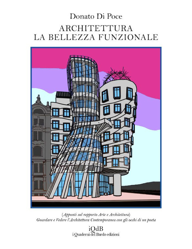“…Un’ultima nota (anche se potrebbe essere la prima): il Di Poce ha scelto non a caso come immagine di copertina il Nationale-Nederlanden Office Building a Praga di Frank O. Gehry – Vlado Milunic´, del 1992-96, più conosciuto con il soprannome di “Ginger e Fred”, un’immagine che per me assume una doppia valenza simbolica, la prima è quella di una architettura di libertà e la danza di un popolo che ha appena conquistato la democrazia; la seconda, è quella di un edificio magico che si raccorda in continuità con la Praga magica tardobarocca e le sue pieghe leibniziane. Una città conservatasi pressoché intatta e così ben descritta da Angelo Maria Ripellino, sopravvissuta al regime comunista e all’invasione sovietica del 1968: “La musica dell’architettura barocca della città vltavina, è un inesausto discanto di forme convesse e concave”, e che poi non è altro che la stessa Praga dei Frammenti di Franz Kafka: “…per ciò che riguarda l’architettura, non c’è differenza tra un’epoca e l’altra, da moltissimo tempo valgono le stesse regole architettoniche…”. Un saggio–guida, quello di Ripellino, denso di curiosità un po’ come potrebbe essere considerata quest’opera del Di Poce: un saggio-guida, altrettanto curioso e appassionato, sull’architettura poetica.”