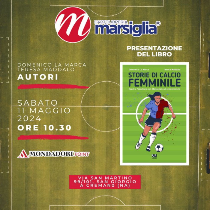 Sarà presentato sabato 11 maggio, alle ore 10.30, presso Libreria Marsiglia di San Giorgio a Cremano (NA), il libro "Storie di calcio femminile. Napoli e Pomigliano: dal dilettantismo al professionismo".