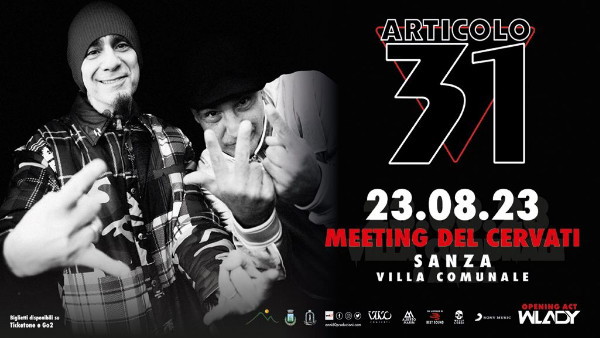 Sarà il concerto degli ARTICOLO 31 l’evento clou del Meeting del Cervati 2023: mercoledì 23 agosto l’iconico duo composto dal rapper J-Ax (Alessandro Aleotti) e dal produttore DJ Jad (Luca Perrini) porteranno la loro musica a Sanza (SA) presso la Villa Comunale di Piazza San Francesco.