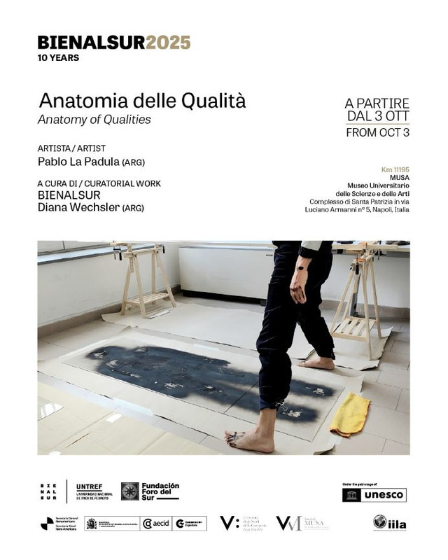 Dal 3 ottobre il MUSA il Museo delle Scienze e delle Arti dell’Università degli Studi della Campania “Luigi Vanvitelli” apre la mostra di Pablo La Padula Anatomia delle Qualità, a cura di Diana Wechsler Direttrice Artistica di BIENALSUR.