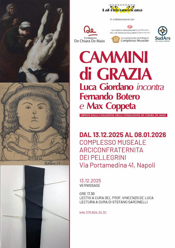 S’inaugura sabato 13 dicembre 2025, la mostra Cammini di Grazia. Dipinti dalla collezione della Fondazione De Chiara De Maio, a cura del professor Vincenzo De Luca e organizzata da LaPrimAmericana in collaborazione con la Fondazione De Chiara De Maio e il Complesso Museale dell’Arciconfraternita dei Pellegrini di Napoli, nella cinquecentesca chiesa di Santa Maria Mater Domini (Piazzetta Fabrizio Pignatelli alle spalle dell’Ospedale Pellegrini).