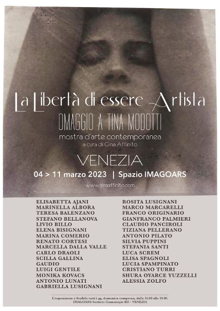 Dal 4 all’11 marzo 2023 presso il Nuovo Spazio Espositivo IMAGOARS, Venezia, Sestiere di Cannaregio, “loft urbano” unico nel suo genere nel centro storico, grazie anche agli ampi affacci sulla laguna di Venezia. Inaugurazione sabato 4 marzo 2023 ore 18.00