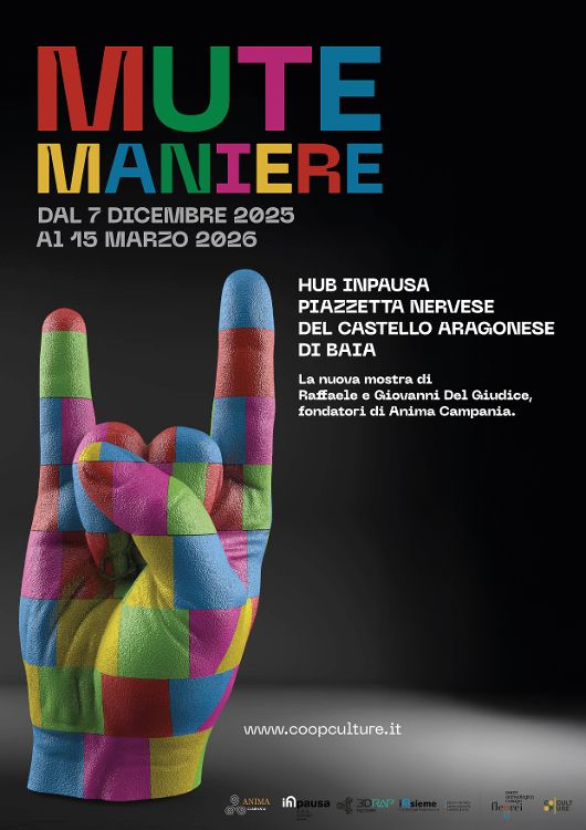 Un viaggio nel linguaggio più antico e potente dell’umanità: il gesto. È questo il cuore di Mute Maniere, la nuova mostra firmata da Raffaele e Giovanni Del Giudice, fondatori di Anima Campania, realizzata in collaborazione con CoopCulture. L’esposizione approda dal 7 dicembre 2025 – con opening alle ore 11 - negli spazi di In_pausa Culture Concept Store del panoramico Castello Aragonese di Baia, luogo simbolo della stratificazione storica e culturale partenopea.