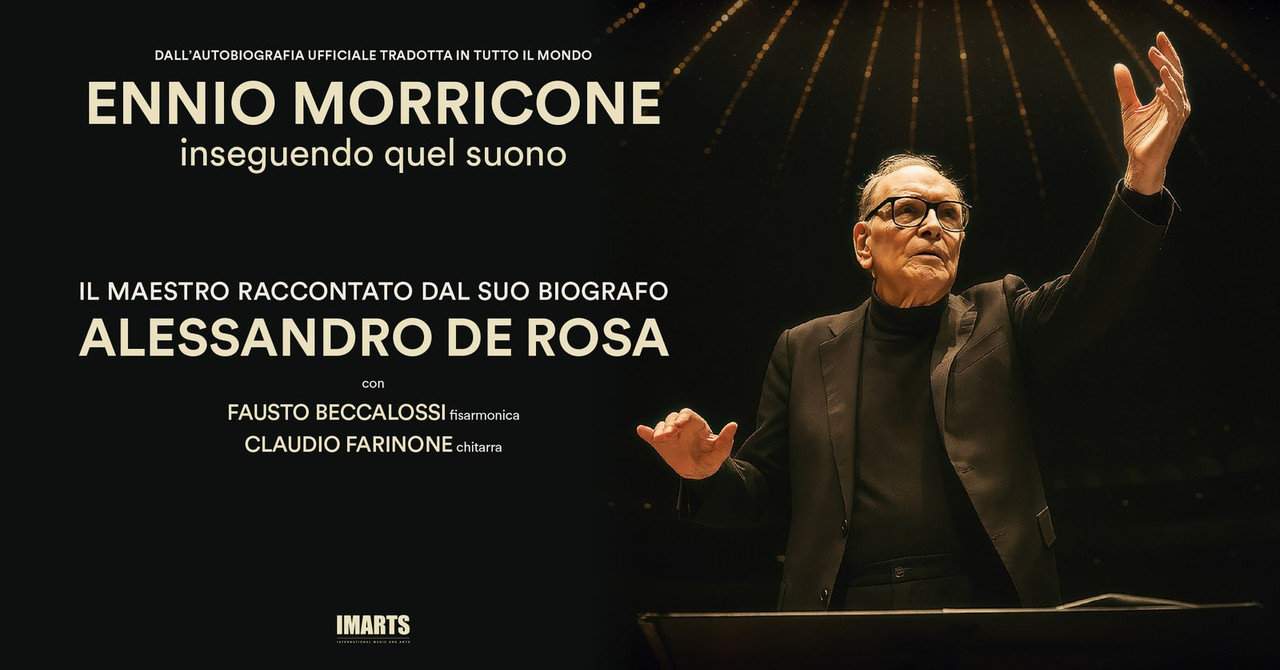 Sul palco, il racconto prende vita attraverso la voce del biografo ufficiale Alessandro De Rosa - coautore insieme al Maestro di quel prestigioso libro-testamento, del podcast Io e Ennio Morricone(Amazon Audible), e, per volontà congiunta del regista premio Oscar e dallo stesso Morricone, voce narrante del film-documentario Enniodi Giuseppe Tornatore - i filmati inediti in cui lo stesso Morricone si confida al pubblico e la grande musica del Maestro, interpretata da due musicisti d’eccellenza: Fausto Beccalossi, tra i massimi virtuosi internazionali della fisarmonica cromatica, e Claudio Farinone, chitarrista e compositore di rara versatilità. Un percorso appassionato tra pensieri, intuizioni, emozioni ed inattese scelte di vita che hanno condotto Morricone alla creazione delle sue opere immortali.