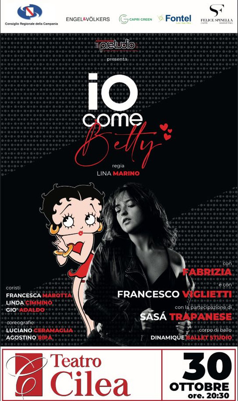 Dopo lo straordinario debutto a Capri, arriva a Napoli al teatro Cilea (unica data) il prossimo 30 ottobre lo spettacolo musicale "Io come Betty" che vedrà protagonista la giovane promettente artista Fabrizia Salvia; già vincitrice di numerosi premi in ambito musicale come "Sanremo canta Napoli" o il premio dedicato al compianto Mino Reitano che vanta partecipazioni a importanti eventi come il Cantagiro e la Settembrata Caprese. L'artista sarà accompagnata sul palco da due colossi dello spettacolo come Sasá Trapanese e Francesco Viglietti e la regia sarà firmata da Lina Marino. L'evento, in programma alle ore 20.30, con il patrocinio della Regione Campania e il supporto di Scabec, ha anche uno scopo benefico ed è dedicato all'Unitalsi per i ragazzi disabili.