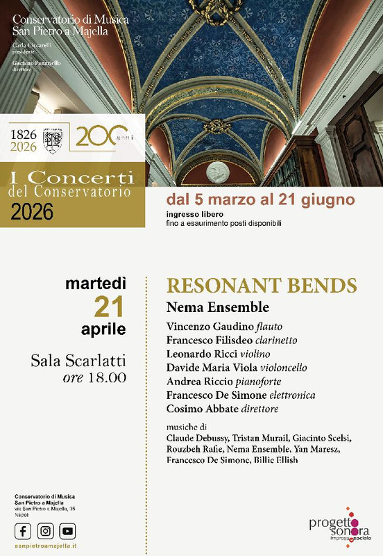 DATA E LUOGO Martedì 21 aprile 2026, ore 18.00 – Sala Scarlatti, Conservatorio di Napoli San Pietro a Majella