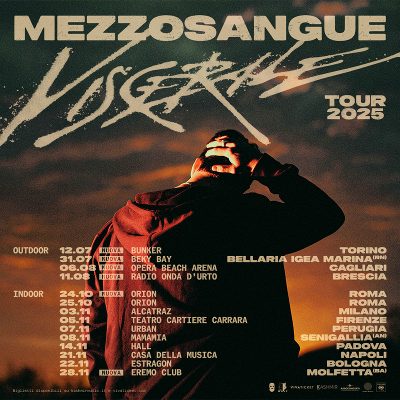 Con Viscerale (Columbia Records / Sony Music Italia), Mezzosangue torna con un lavoro crudo e necessario. Sul palco i brani cambiano pelle e respirano con il pubblico. Dopo la vibrazione del Red Bull 64 Bars Live a Roma, il tour diventa rito condiviso: la confessione privata si fa voce comune.