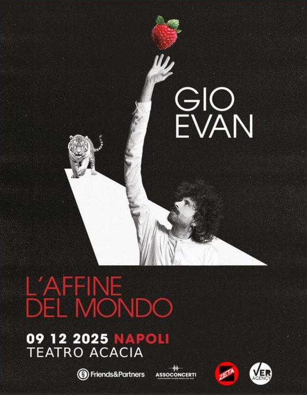 Da oggi sono disponibili le prevendite per il nuovo tour teatrale scritto e diretto da Gio Evan dal titolo “L'affine del mondo”, biglietti su Ticketone.it e nei punti vendita abituali (https://www.ticketone.it/artist/gio-evan/). Il tour farà tappa anche a Napoli, al Teatro Acacia (Via Raffaele Tarantino, 10) il 9 dicembre 2025, per un esclusivo spettacolo in Campania. Per informazioni: Veragency tel. 335 5235134 - info@veragency.com.