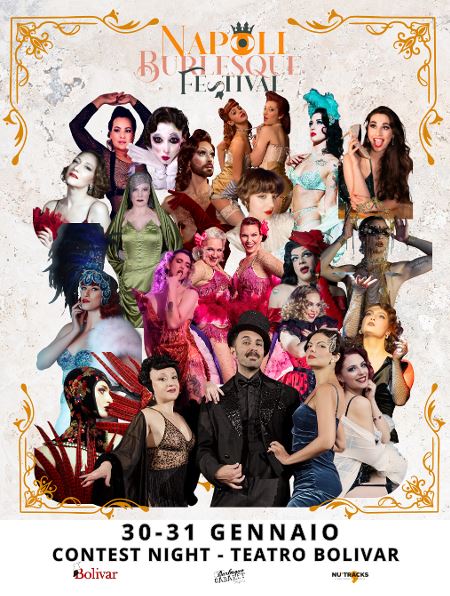 Al Teatro Bolivar (Via Bartolomeo Caracciolo, 30), diretto da Nu’Tracks, arriva la prima edizione del Napoli Burlesque Festival con due serate imperdibili dedicate all’arte, all’eleganza e all’ironia del burlesque, cooprodotte da Nu’Tracks e Burlesque Cabaret NapoliVenerdì 30 e sabato 31 gennaio 2026, open ore 20.00/start ore 21.00, sarà la prima volta a Napoli di molti artisti internazionali che si esibiranno nel teatro di Materdei per decretare il primo vincitore della prima edizione del Festival.