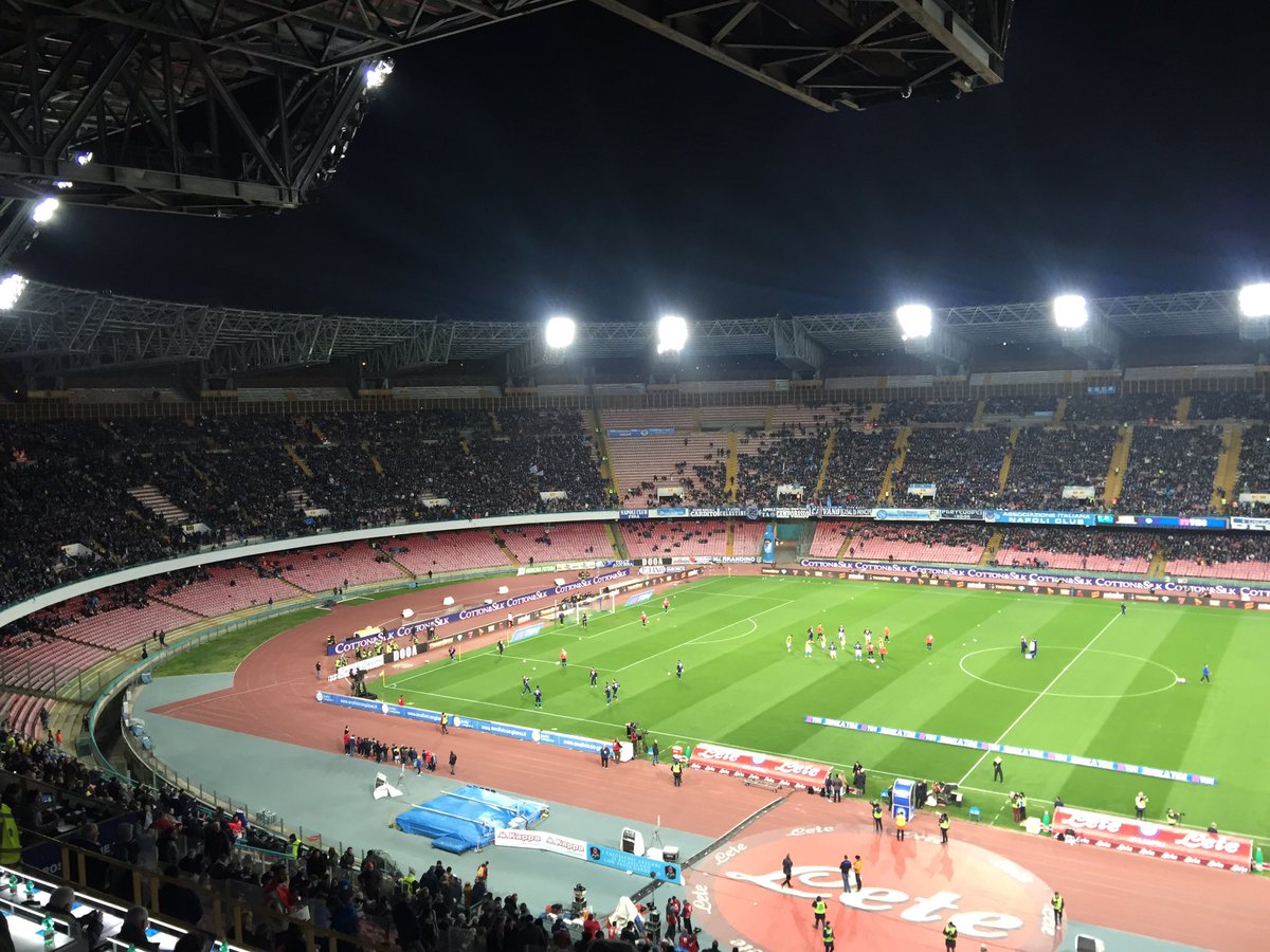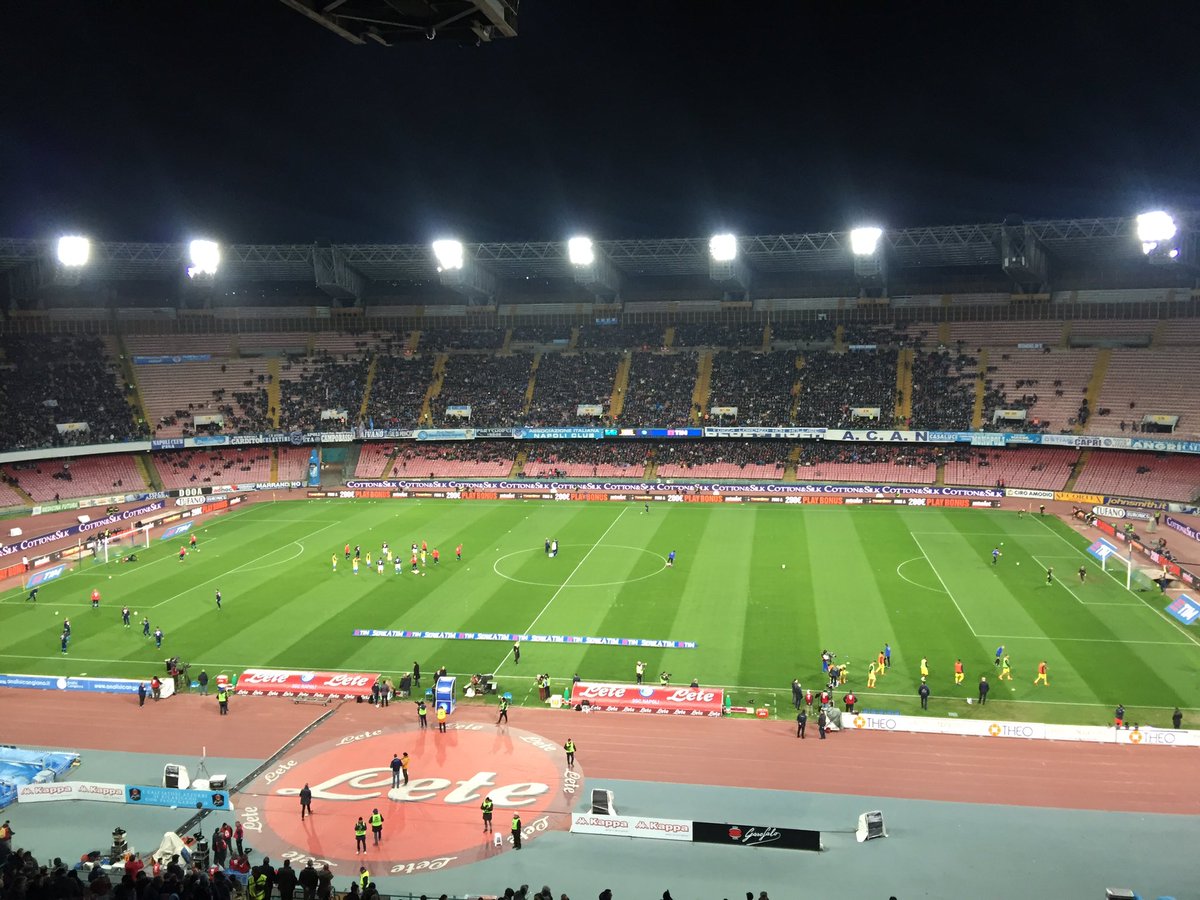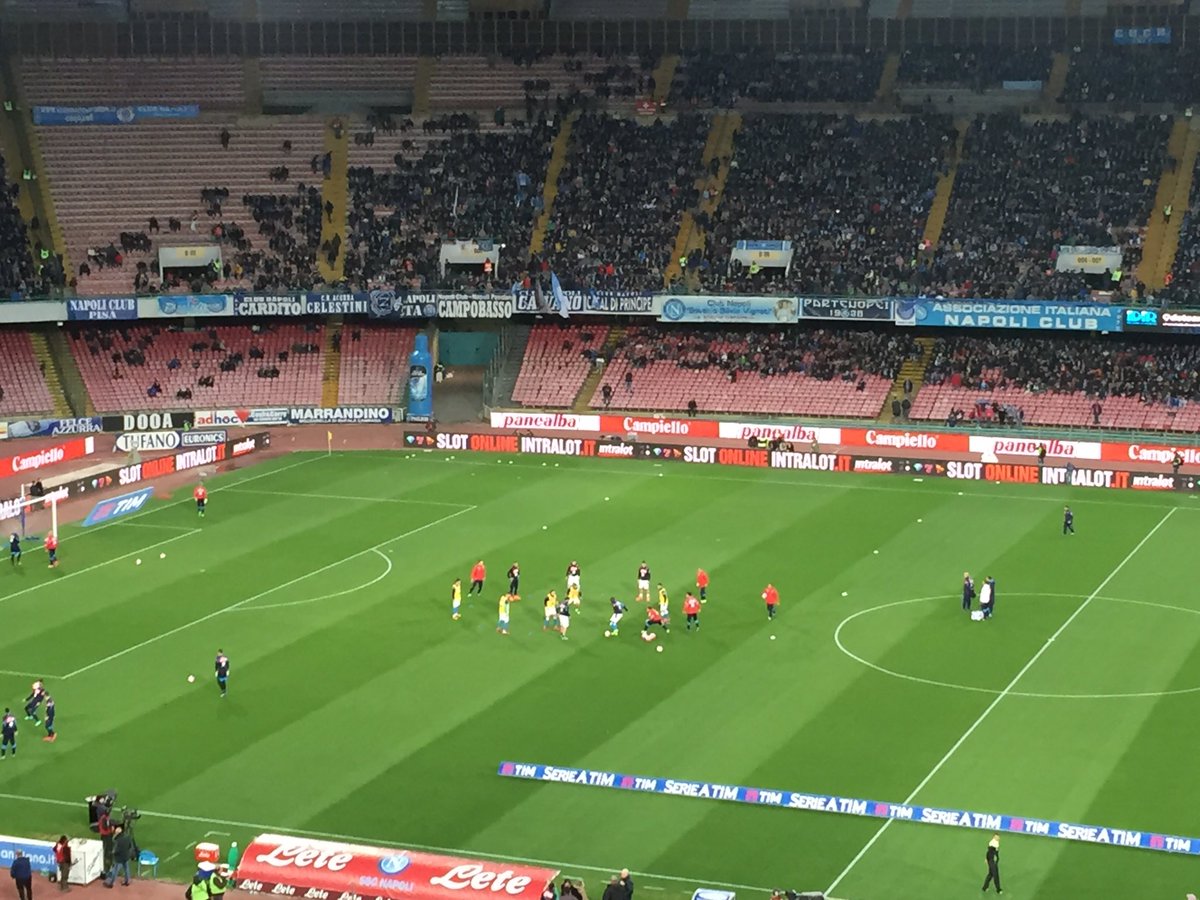 "#NapoliChievo squadre in campo per il riscaldamento e spettatori sugli spalti", ecco 4 foto pubblicate su Twitter da "Napoli Magazine".