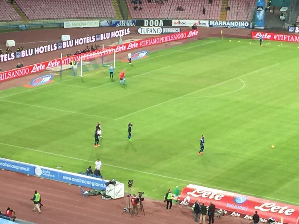 "#NapoliPalermo squadre in campo per il riscaldamento pre gara #ForzaNapoliSempre", ecco quattro foto pubblicate su Twitter da "Napoli Magazine".