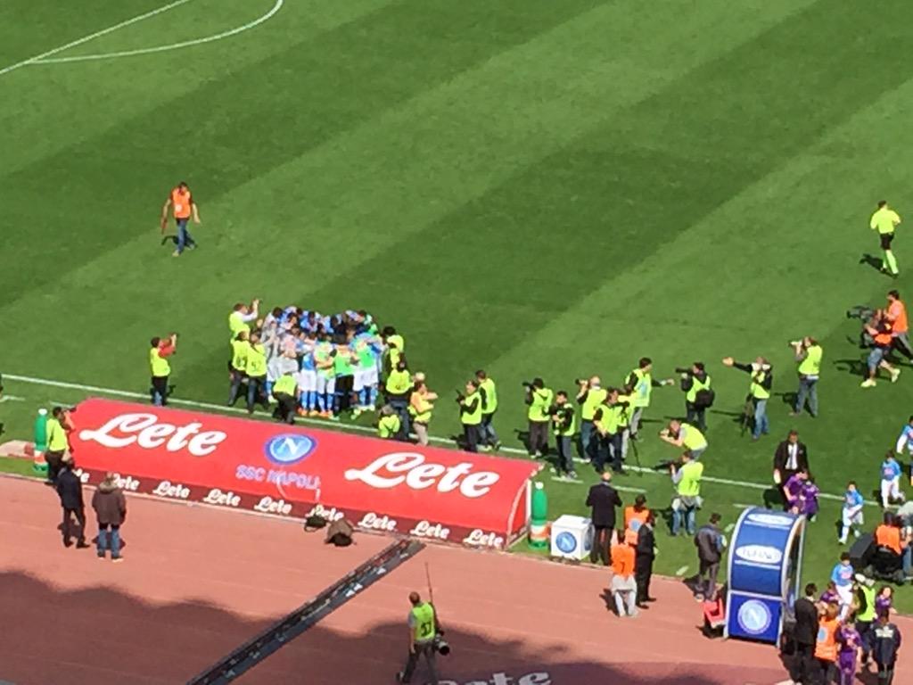 Pima del fischio d'inizio del match contro la Fiorentina allo stadio San Paolo, l'intera squadra del Napoli - compresi i calciatori in panchina - si è riunita in cerchio abbracciandosi per darsi la giusta carica in vista di una partita molto importante per riprendere il giusto cammino in campionato.