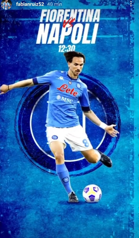 Fabian Ruiz, centrocampista del Napoli, è pronto per la sfida contro la Fiorentina in programma oggi alle ore 12:30. Ecco le immagini da lui pubblicate su Instagram.