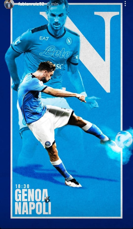"Genoa vs Napoli" si legge sulla locandina pubblicata su Instagram dal centrocampista azzurro Fabian Ruiz nel giorno del match contro il Genoa.