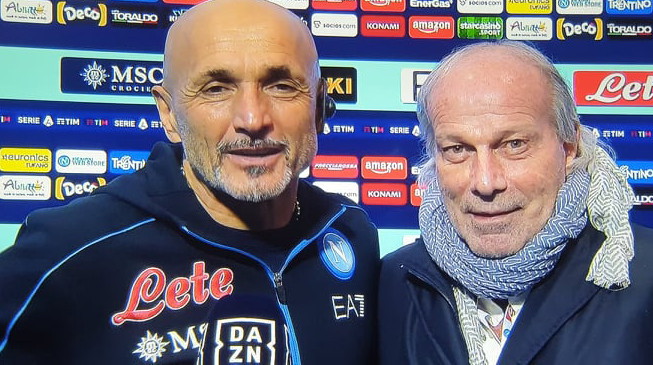"E' arrivato Sabatini, quando è arrabbiato ti guarda con quegli occhi e ti perfora!", ha detto l'allenatore del Napoli Luciano Spalletti durante l'intervista a DAZN invitando il d.s. della Salernitana a raggiungerlo e ad unirsi a lui nell'intervista. Sabatini lo ha abbracciato ed ha esclamato: "Il Napoli è ovviamente più forte, ma hanno ripristinato la regola della piazzetta? Ogni tre corner era rigore? Con tutta la generosità non ho visto nè il primo nè il secondo, poi avremmo perso lo stesso, però...". Spalletti ha commentato: "Al direttore non si ribatte!".