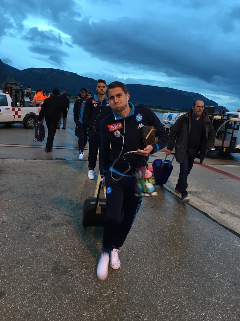 "I campioni sono atterrati", scrive su Twitter Tommaso Starace, storico magazziniere del Napoli, pubblicando una foto scattata agli azzurri appena atterrati a Palermo in vista del match in programma domani sera alo stadio Barbera.