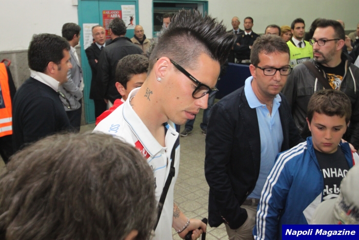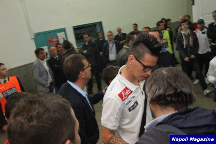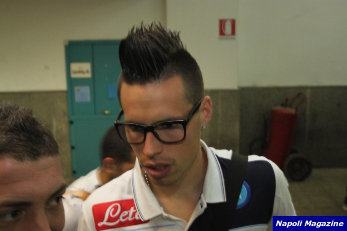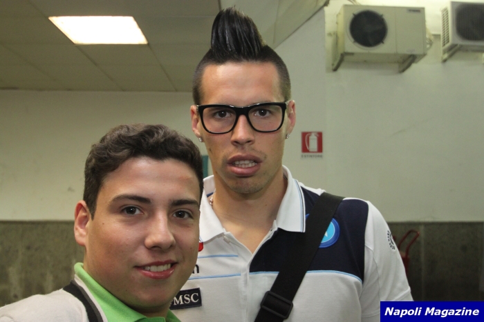 NAPOLI - Tra i protagonisti assoluti di Napoli-Palermo (2-0) c'e' stato Marek Hamsik. Lo slovacco, dopo la partita, si e' concesso ad alcuni tifosi presenti dopo il sottopassaggio e gli spogliatoi. Eccolo nelle Foto di "Napoli Magazine" con la sua fantastica cresta che sembra sempre piu' alta! Prima e dopo ogni allenamento e gara ufficiale, Marek dedica molta cura ai suoi capelli.
