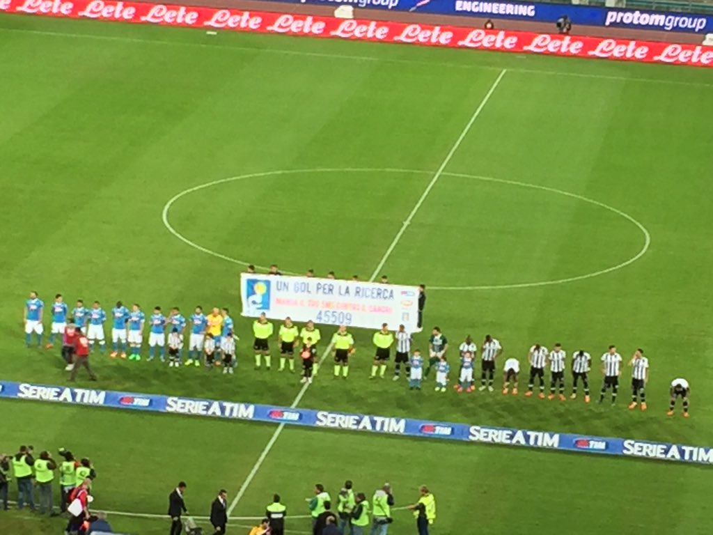 "#NapoliUdinese, squadre in campo! #ForzaNapoliSempre", si legge sul canale ufficiale del Napoli su Twitter dove è stata pubblicata la seguente foto.
