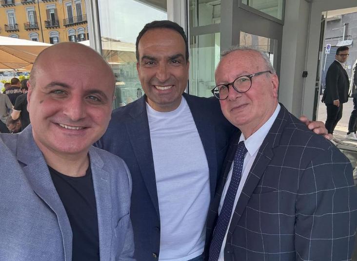 NAPOLI - Antonio Petrazzuolo, direttore di Napoli Magazine, e Vincenzo Petrazzuolo, a.d. di "Napoli Magazine", con Edoardo Trotta a "Palazzo Petrucci", in occasione della conferenza stampa di presentazione dei ritiri estivi del Napoli a Dimaro Folgarida e Castel di Sangro: