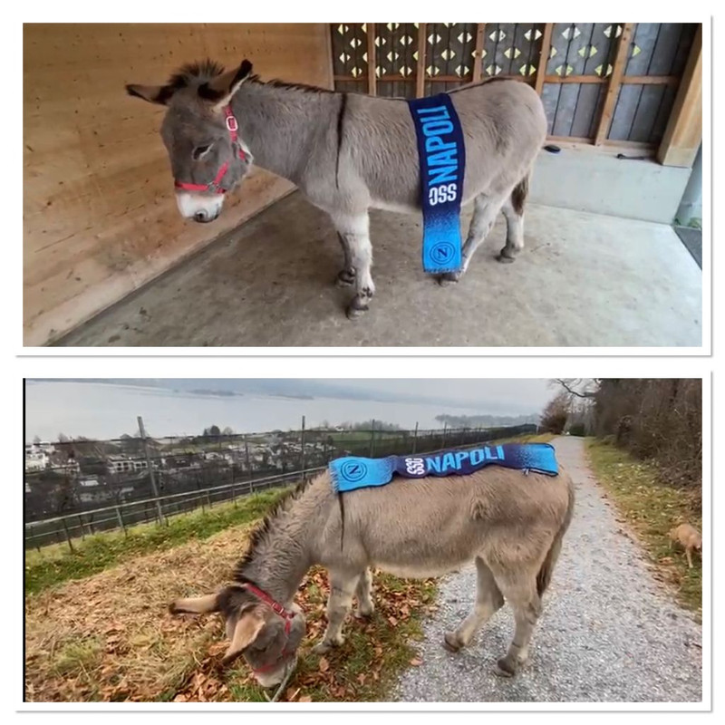 NAPOLI - La passione per il Napoli continua a fare il giro del mondo. Un tifoso azzurro ha inviato una foto a "Napoli Magazine" che mostra un simpatico asino con la sciarpa del Napoli a Zurigo.