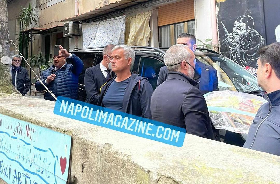 NAPOLI - Josè Mourinho, allenatore della Roma, ha fatto tappa al murales Maradona ai Quartieri Spagnoli. Ecco le foto di "Napoli Magazine".