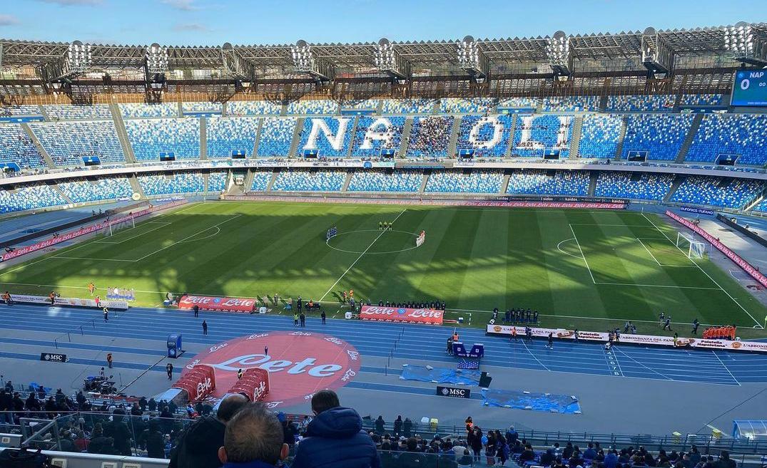 Un minuto di silenzio nel ricordo di Gianni Di Marzio allo stadio Maradona, pochi minuti prima del fischio d'inizio. Ecco lo scatto di "Napoli Magazine".
