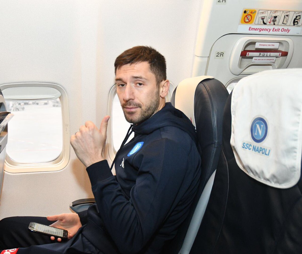 Azzurri in partenza in aereo in vista del match in programma domani in trasferta contro il Cagliari. Nelle foto pubblicate su Twitter dalla SSC Napoli ci sono anche i neo acquisti Machach e Milic.