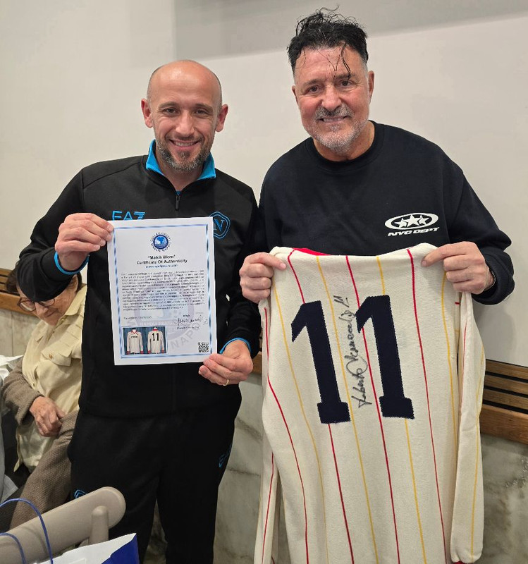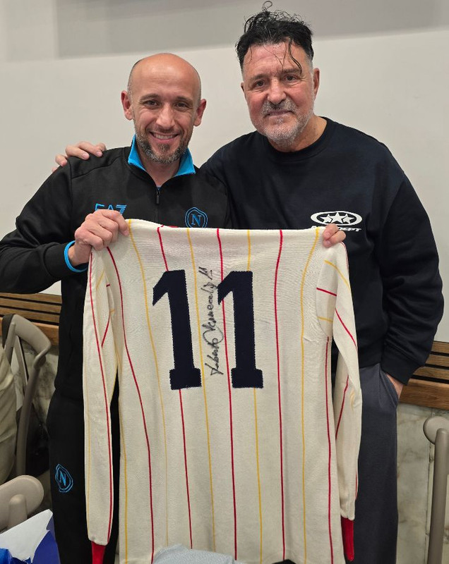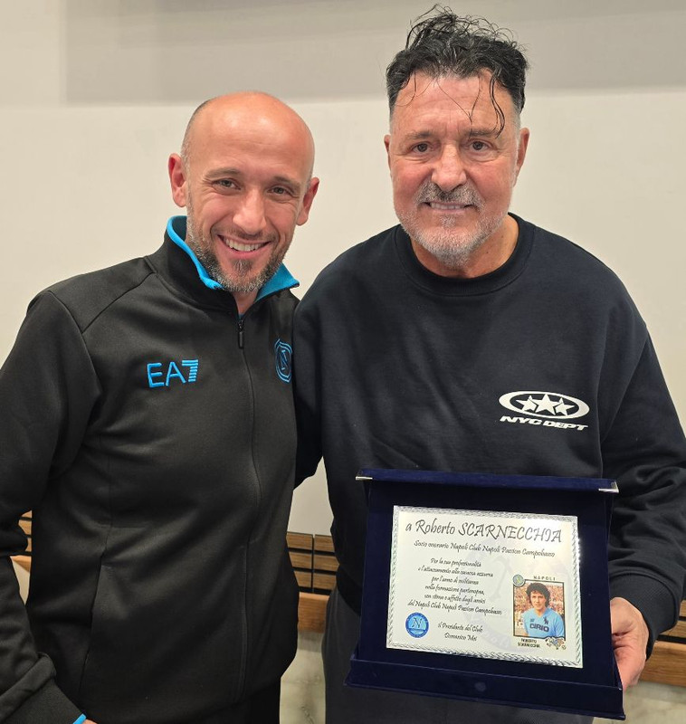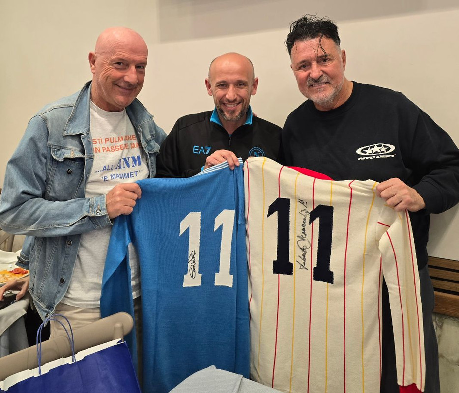 Domenico Mei, presidente del Napoli club Napolipassion Campobasso ha incontrato a Napoli l'ex azzurro Roberto Scarnecchia che è stato premiato come socio onorario del Napoli Club Campobasso ed ha ricevuto in omaggio una targa. Scarnecchia ha poi autografato e certificato una sua rarissima maglia Napoli degli anni '80 della collezione casacche azzurre del napolipassion di Domenico Mei. Piacevole e gradita la presenza di un altro storico ex calciatore del Napoli, ovvero Claudio Pellegrini. Ecco le foto inviate a "Napoli Magazine".
