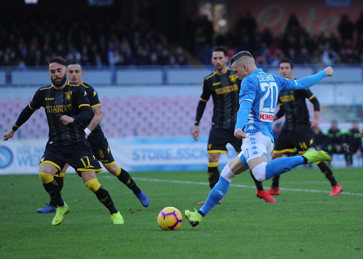 Nelle foto pubblicate su Twitter dalla SSC Napoli, ecco i 4 gol segnati ieri dagli azzurri Zielinski, Ounas e Milik (doppietta) nel match vinto al San Paolo contro il Frosinone.