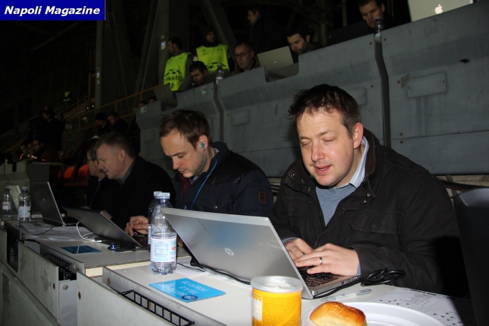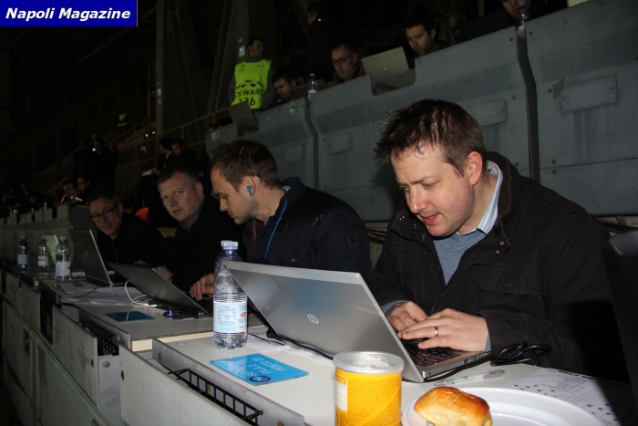 NAPOLI - "Non c'è sconfitta nel cuore di chi lotta", onore e merito al #Napoli e ai propri tifosi, ripartiamo più forti di prima, battiamo l'Inter!", scrive su Twitter il direttore di "Napoli Magazine", Antonio Petrazzuolo, che prima di Napoli-Arsenal, ha rilasciato le seguenti dichiarazioni alla BBC, eccole tradotte in italiano: "Il Napoli? Con Higuain in forma la squadra riesce ad incutere maggiore timore negli avversari. La cura Benitez? C'è e si vede. Il tecnico spagnolo ha rivoluzionato la squadra. Nuovi giocatori, nuovo modulo, nuove idee e nuova filosofia su come vivere la settimana. Al di là del risultato il Napoli sta programmando il proprio futuro per restare stabilmente in Europa ed in vetta al campionato italiano. Gli innesti di Callejon, Mertens, Albiol e Reina hanno dato maggiore quadratura alla squadra. Un nome che potrà fare bene in futuro? Lorenzo Insigne". Ecco le immagini in Tribuna Stampa con i colleghi della BBC durante la diretta.