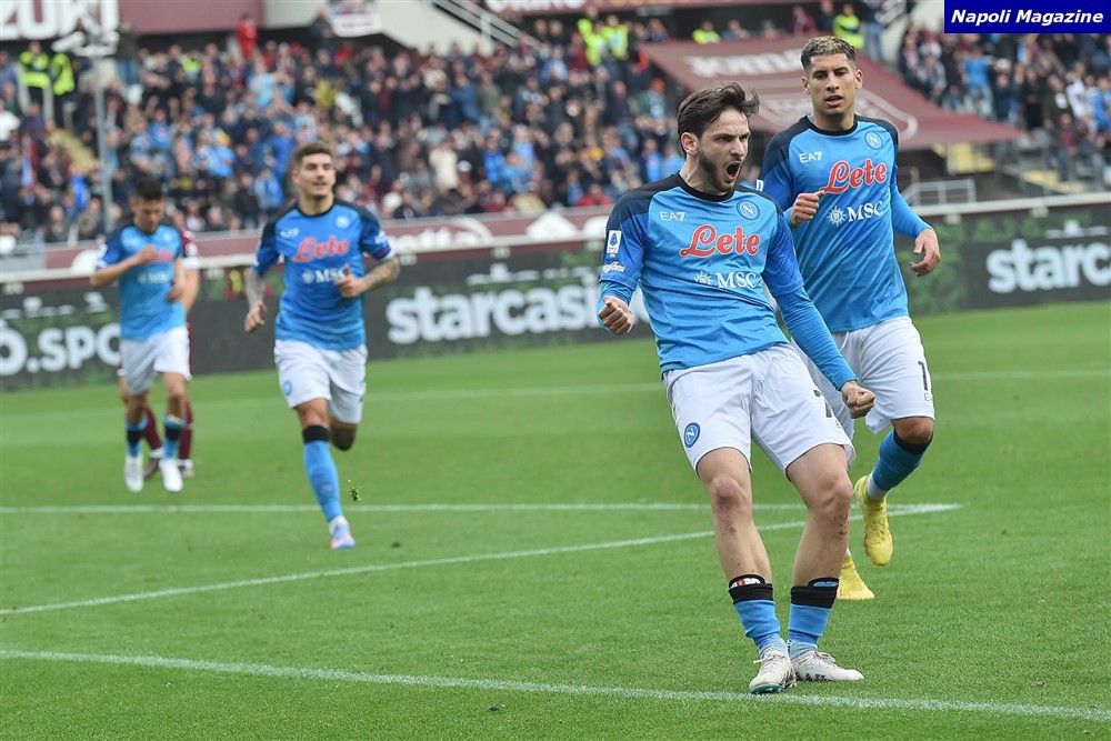 Torino-Napoli, la vena sul collo di Kvaratskelia dopo il gol su rigore e l’esultanza al bacio. Ecco le immagini di "Napoli Magazine".
