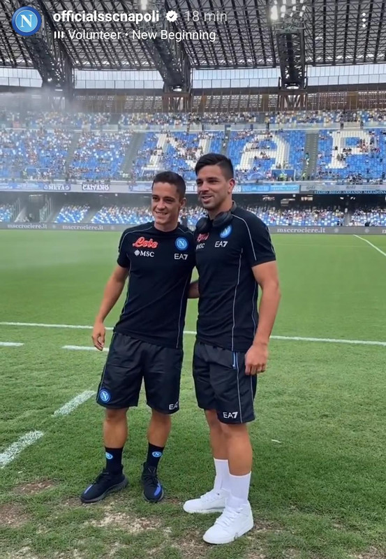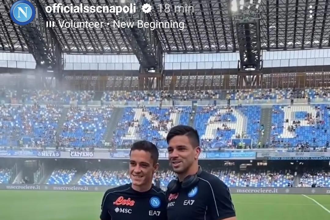 Napoli-Monza, ecco i neo azzurri Giacomo Raspadori e Giovanni Simeone in campo allo stadio Maradona, prima del match contro il Monza. Di seguito lo scatto pubblicato dal club azzurro su Instagram.