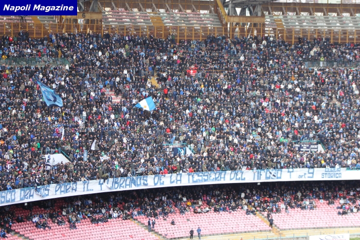 "#Napoli la Curva B chiede a #PapaFrancesco di liberare i tifosi dalla Tessera del Tifoso", questo il tweet di Antonio Petrazzuolo, dir. di "Napoli Magazine", direttamente dal San Paolo con lo striscione della Curva B: "Caro Francesco, preghiamo per te e liberaci dalla tessera del tifoso". Poi il commento finale: "Non era una gara semplice, i ritorni al gol di Cavani e Pandev chiudono un periodo nero, spengono polemiche stucchevoli, ed ora la volata finale". Ecco le Foto di "Napoli Magazine".