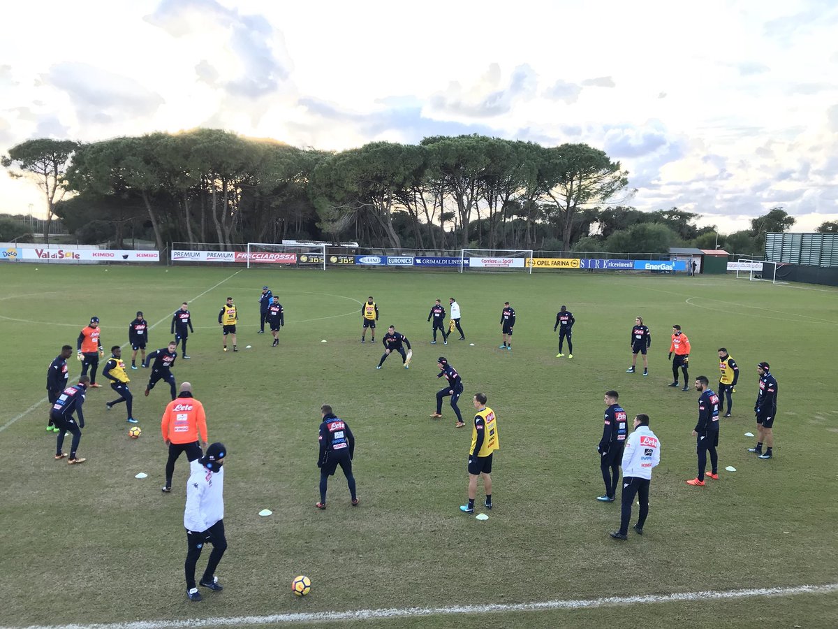 Azzurri verso Napoli-Fiorentina in allenamento a Castel Volturno, ecco la foto pubblicata su Twitter dal club partenopeo.