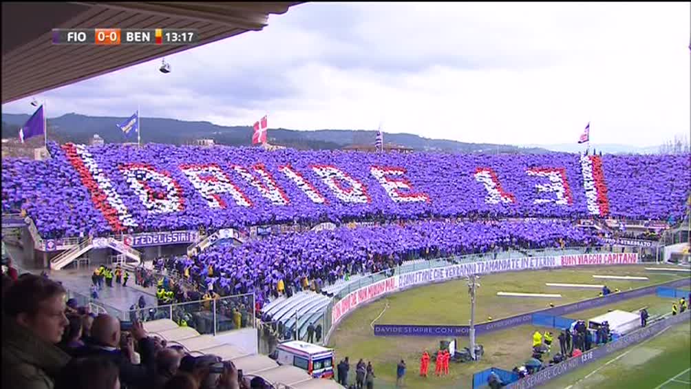 Fiorentina-Benevento, la partita si ferma al Franchi al minuto 13: ecco il bellissimo ricordo della Curva Fiesole per Davide Astori nella foto pubblicata su Twitter da Premium Sport. Tutti fermi dentro al campo, è il minuto 13': così Fiorentina e Benevento ricordano Davide Astori, il capitano viola morto nel sonno sette giorni fa nel ritiro della squadra a Udine. Dopo il minuto di silenzio osservato da tutto lo stadio, l'arbitro Pasqua ha fischiato l'inizio, e per 13' il gioco è andato avanti su ritmi lenti. Poi, al 13', il pallone è stato buttato in fallo laterale, tutti si sono fermati e la curva Fiesole si è vestita di viola con la scritta Davide 13, tra gli applausi di tutti. Quindi, la ripresa del gioco.