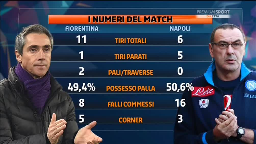 "I numeri di #FiorentinaNapoli, 1-1, partita molto equilibrata", si legge sul canale Twitter di Premium Sport dove è stata pubblicato il seguente schema.