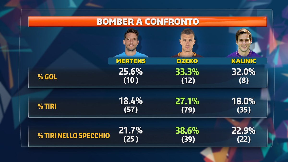 Nllo schema pubblicato su Twitter da Premium Sport ecco i bomber a confronto di Napoli, Roma e Fiorentina.