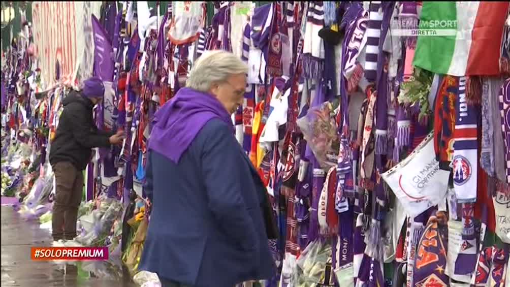 Diego Della Valle si ferma davanti ai messaggi d'affetto dei tifosi Viola in memoria di Astori, prima di Fiorentina-Benevento. Ecco una foto pubblicata su Twitter da Premium Sport.