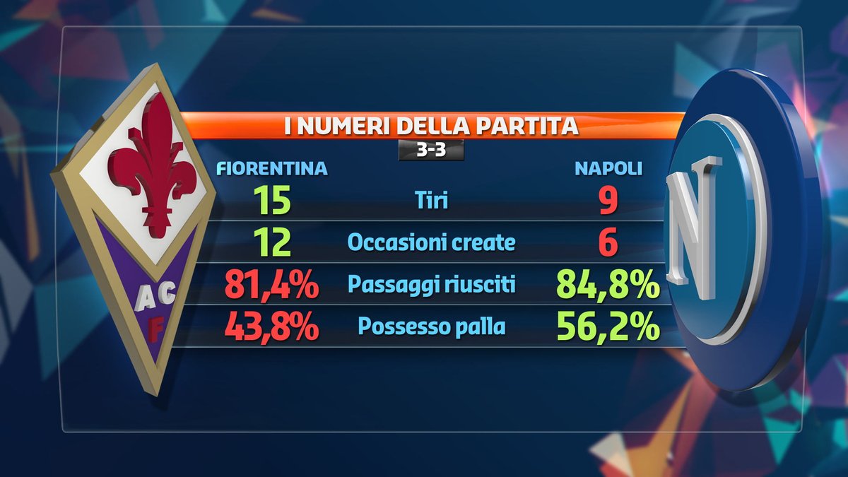 Nel grafico di Premium Sport, ecco i numeri di Fiorentina-Napoli 3-3.