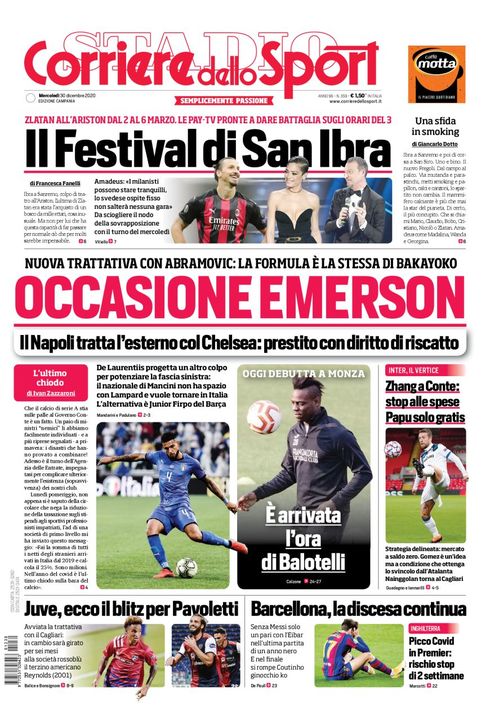 Il Corriere dello Sport, nella sua edizione Campania, apre la paima pagina con un titolo sul mercato del Napoli: "Napoli, occasione Emerson Palmieri. Nuova trattativa con Abramovic: la formula è la stessa di Bakayoko. Il Napoli tratta l'esterno col Chelsea: prestito con diritto di riscatto".