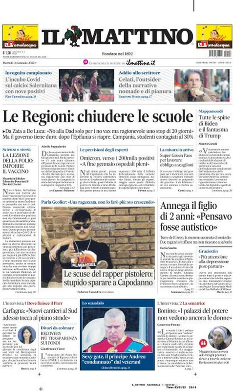 Il Mattino apre con il caso Salernitana: "L'incubo Covid su calcio, Salernitana con nove positivi".