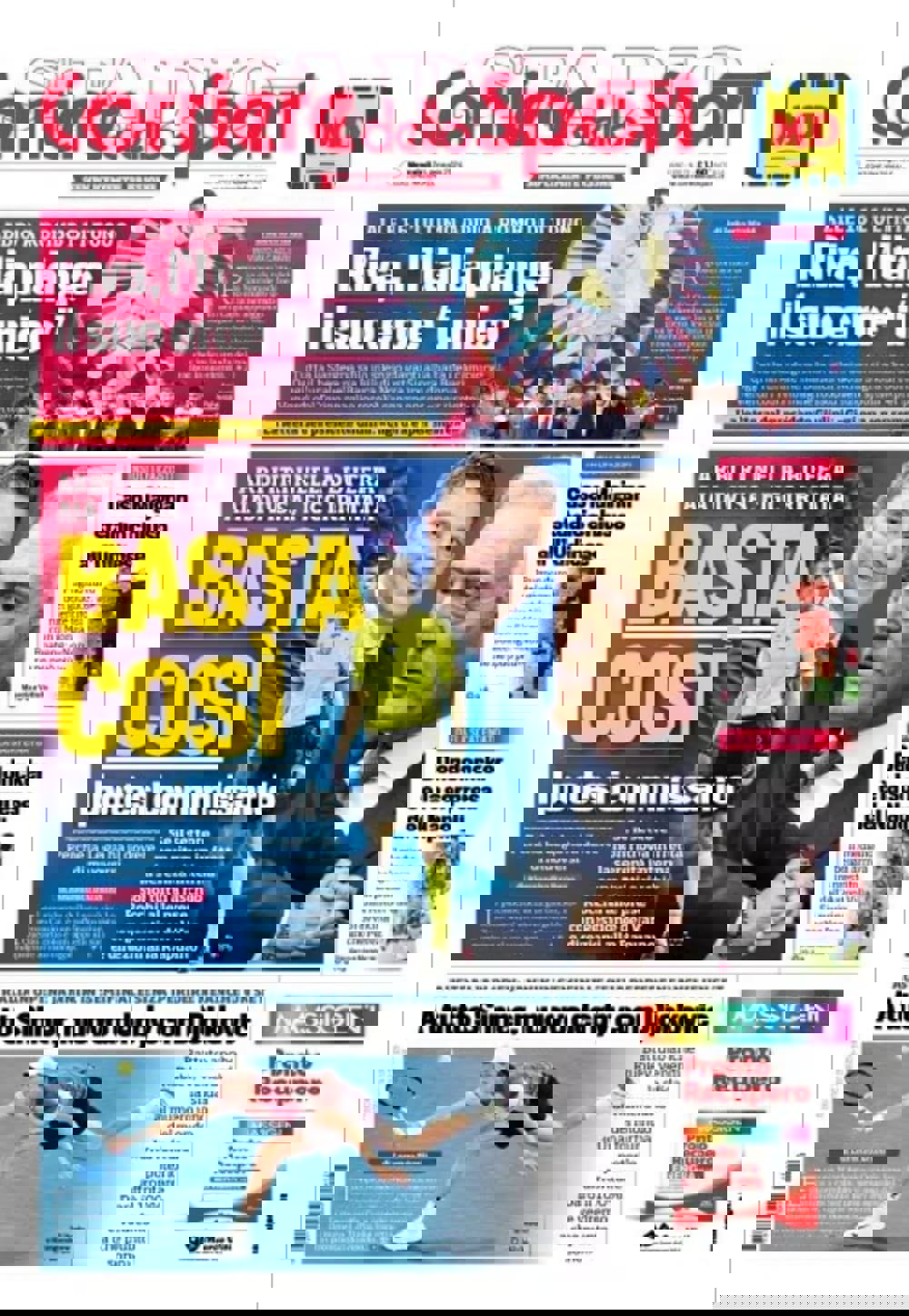 Il Corriere dello Sport, in prima pagina, apre con le polemiche legate alle recenti prestazioni degli arbitri italiani, la vittoria di Sinner contro Rublev nei quarti degli Australian Open ed il mercato del Napoli.