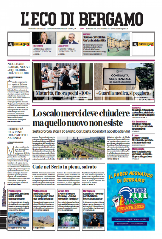L'Eco di Bergamo dà rilievo, in basso, alla firma di Kolasinac con l'Atalanta: "Pronto per l'Atalanta, società fantastica" le prime parole del terzino.