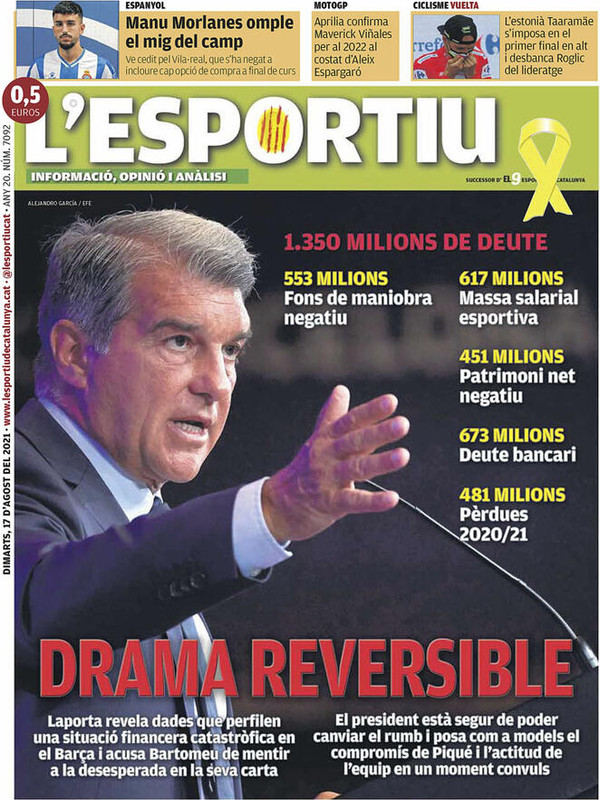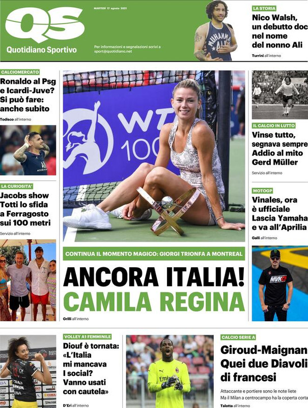 Il futuro di Cristiano Ronaldo è il tema principale sulle prime pagine dei quotidiani sportivi in edicola martedì 17 agosto 2021. Il mercato tiene banco non solo per il portoghese, ma anche per Dusan Vlahovic, nel mirino dell'Atletico Madrid. Si parla di Coppa Italia con i risultati del secondo turno e l'impresa della Ternana contro il Bologna.