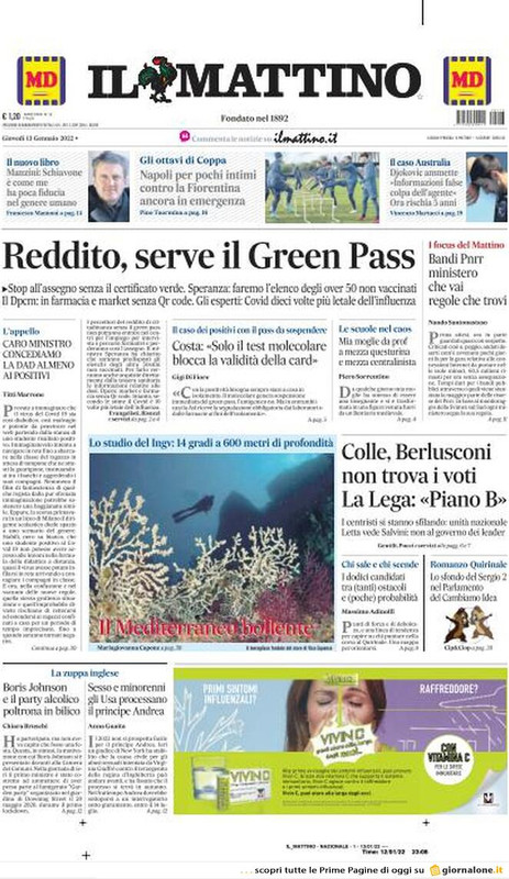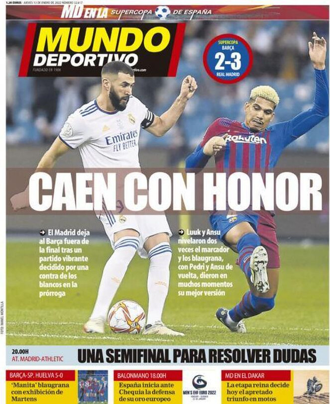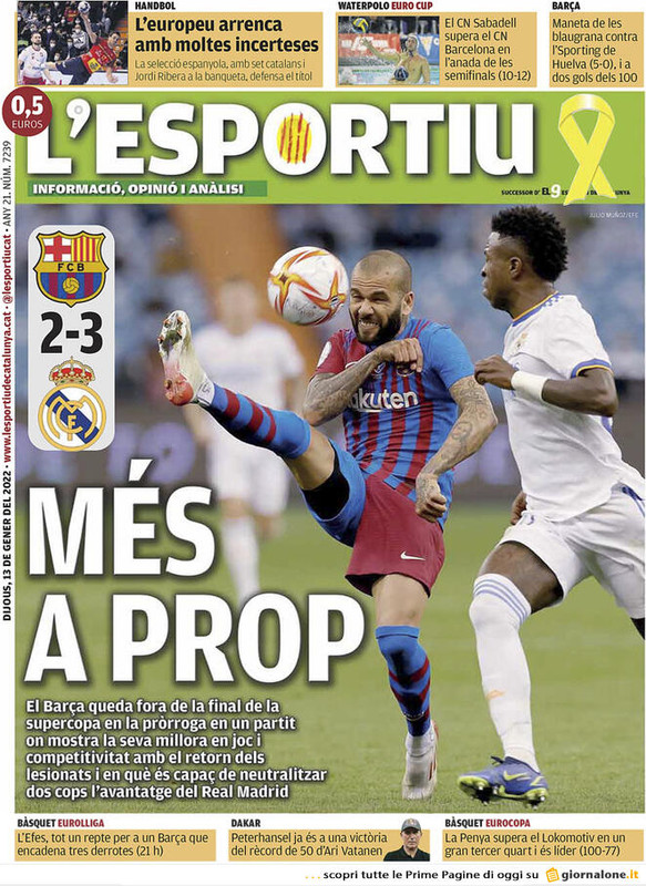 Il Corriere dello Sport in primo piano titola sulla vittoria della Supercoppa da parte della squadra di Inzaghi grazie al gol di Sanchez: "Inter Maravilla". In taglio basso si legge: "Napoli: Adarabloyo. Arsenal su Vlahovic" oltre alle ultima sulla Roma: "È arrivato Oliveira, l'uomo per Mou".