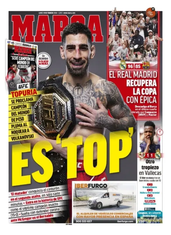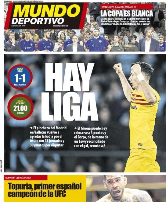 Le prime pagine sportive dei quotidiani in edicola oggi, lunedì 19 febbraio, si concentrano sulle partite della 25ª giornata di Serie A andate in scena ieri. Il Bologna ha battuto la Lazio all'Olimpico, la Roma ha stravinto 0-3 in casa del Frosinone, mentre il Milan ha perso 4-2 a Monza.